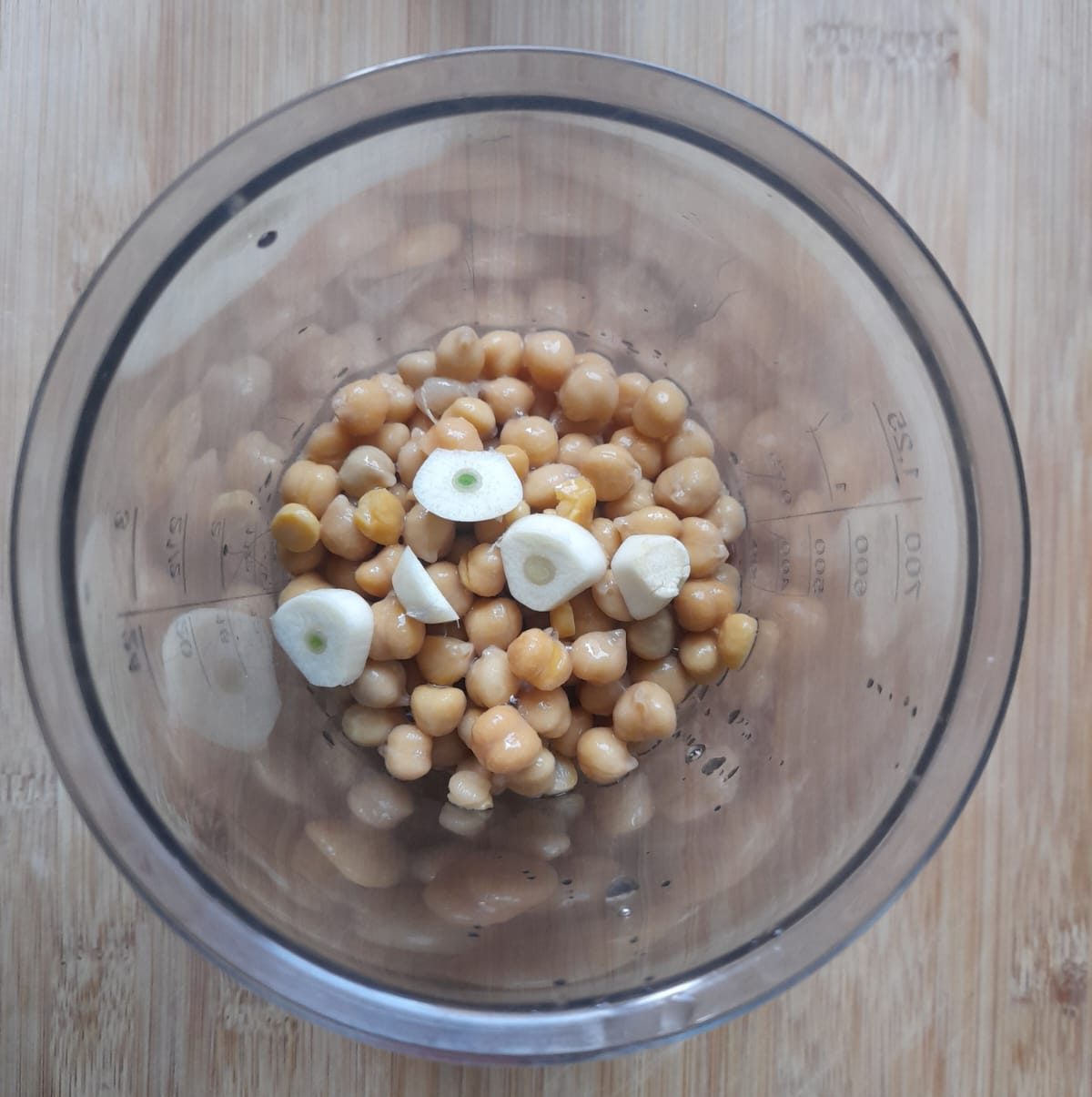 Note: If using a hand blender like me you may need to scoop the mixture out of the blender head once or twice using a teaspoon as the chickpeas will compact together when you first press down