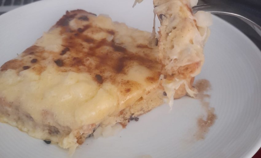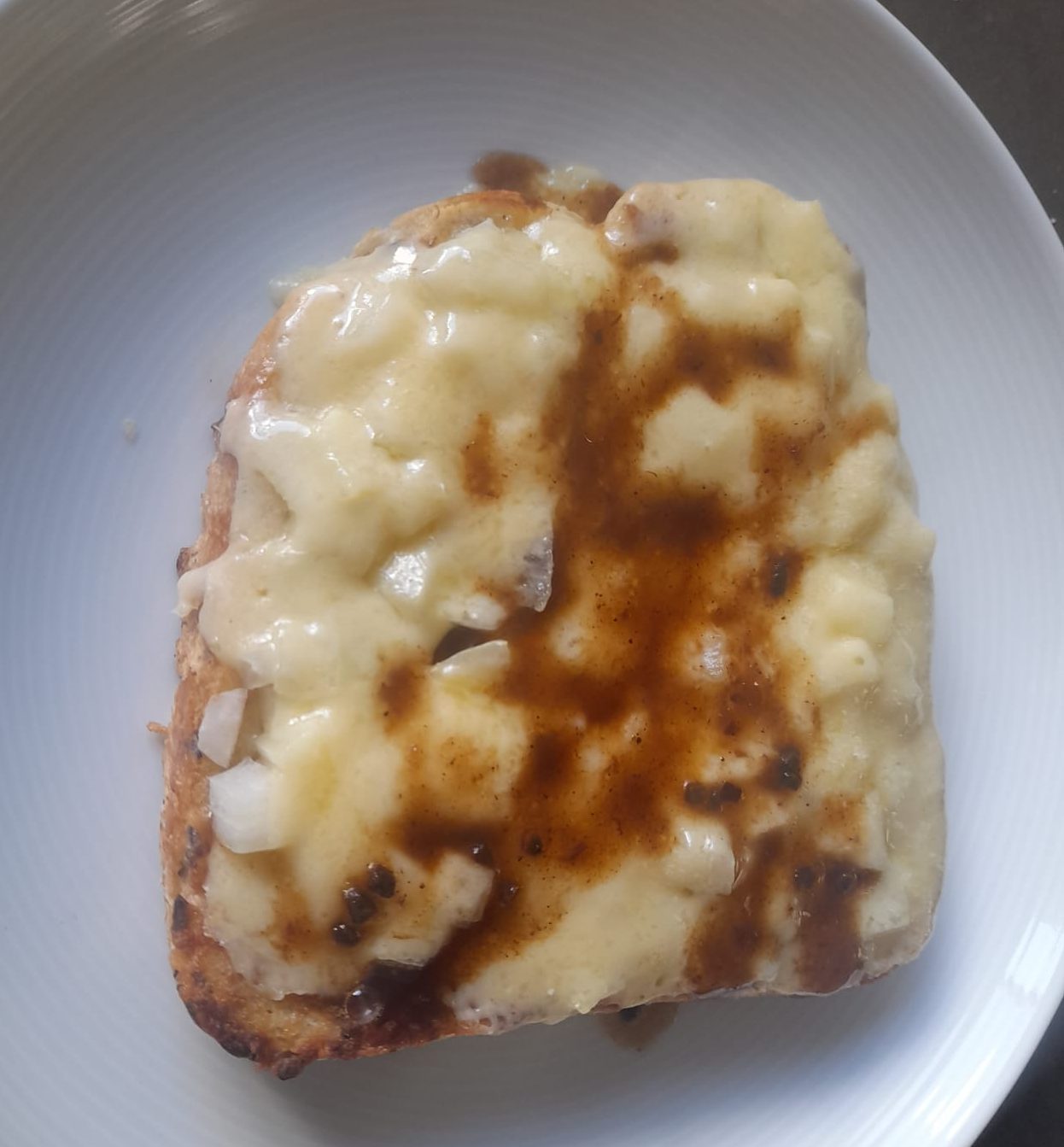 This is a super simple recipe using what you will most likely already have in the house – it came about when we were in need of an afternoon snack but didn’t have much of interest in the fridge. It’s now become a firm favourite in our household. The softness of the eggy bread with the crunchy of the onions and melty cheese is a winning combination. The Worcestershire sauce is optional but I would highly recommend it!